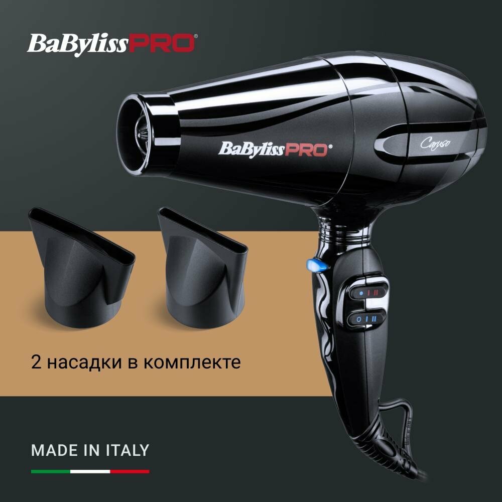 Фен BaByliss Pro Caruso, 2400 Вт, 2 насадки черный Bab6520re .