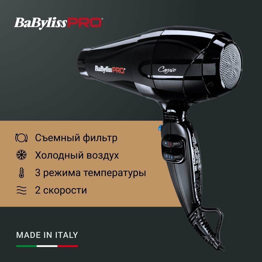 Фен для волос BaBylissPRO Caruso BAB6520RE черный 2400 (Италия)