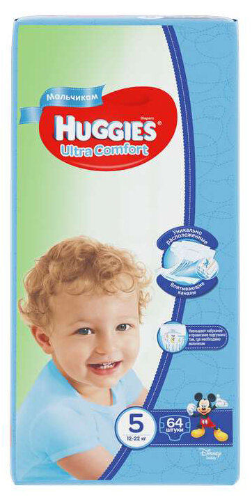 Подгузники Huggies Ultra Comfort для мальчиков 5 (12-22кг), 64 шт.