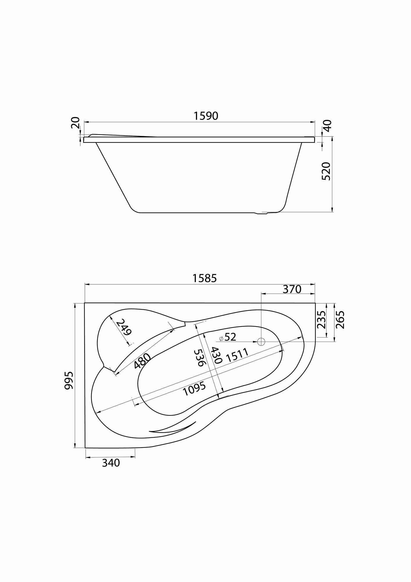 Акриловая ванна Santek Ибица XL 160 R без гидромассажа R