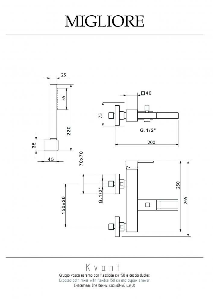 Смеситель Migliore Kvant ML.KVT-2700.CR для ванны с душем