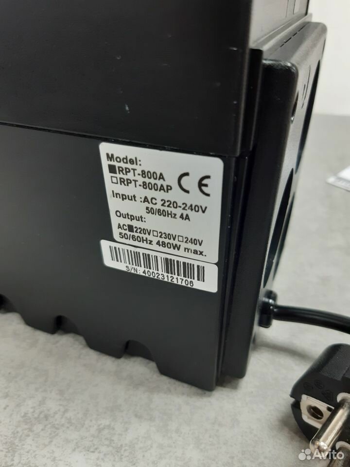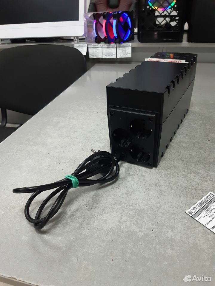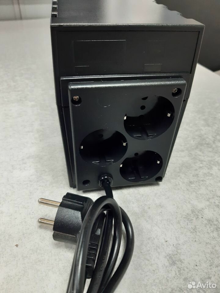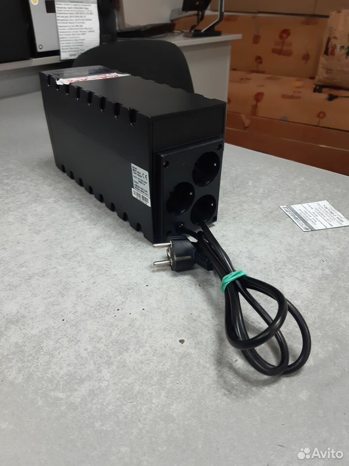 | Плюсы: | Встроенный AVR стабилизатор, 3 розетки для подключения устройств, 480 Вт активной мощности. Пищит при полном отключении тока. |