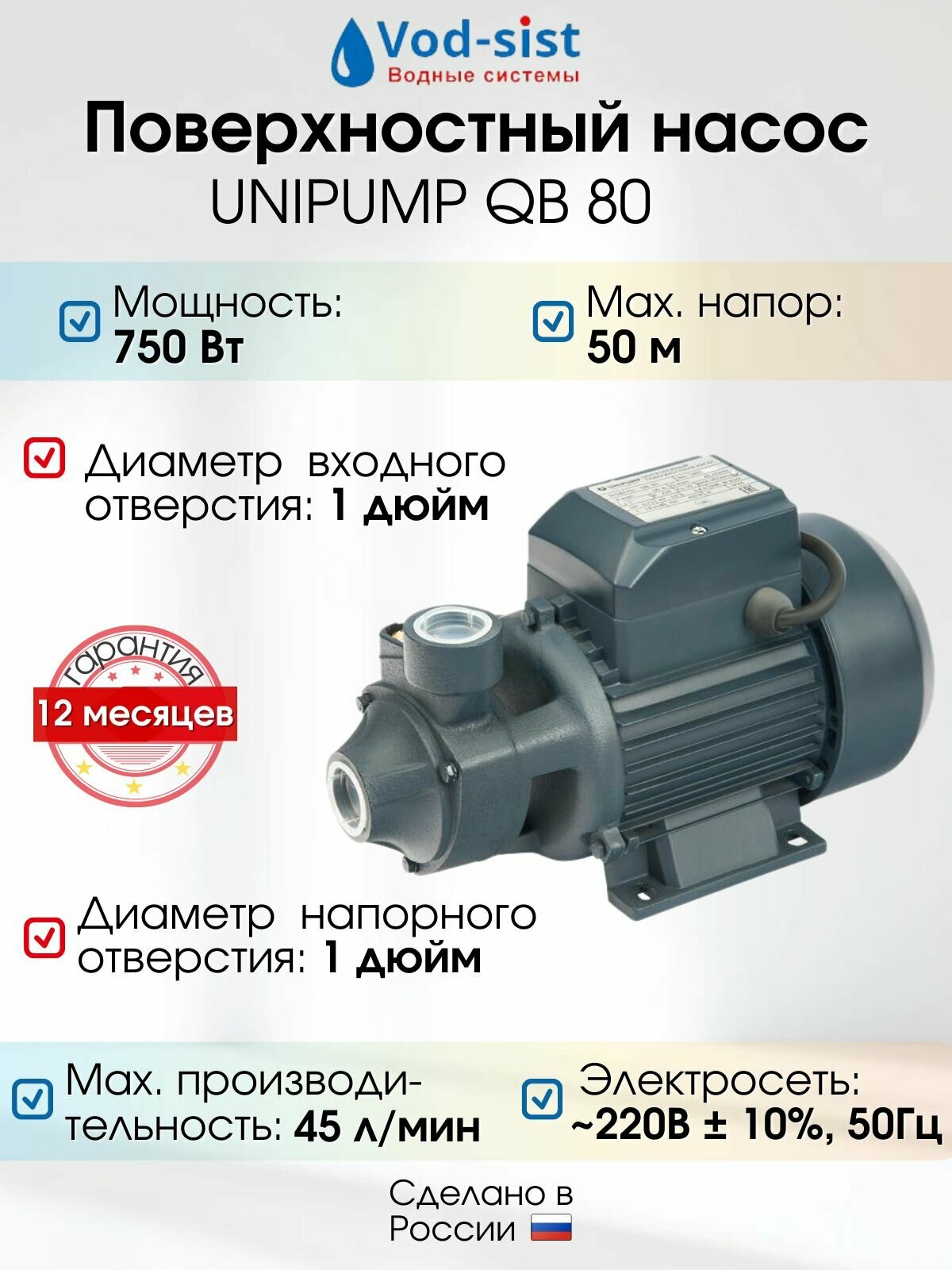 Насос поверхностный UNIPUMP QB 80
