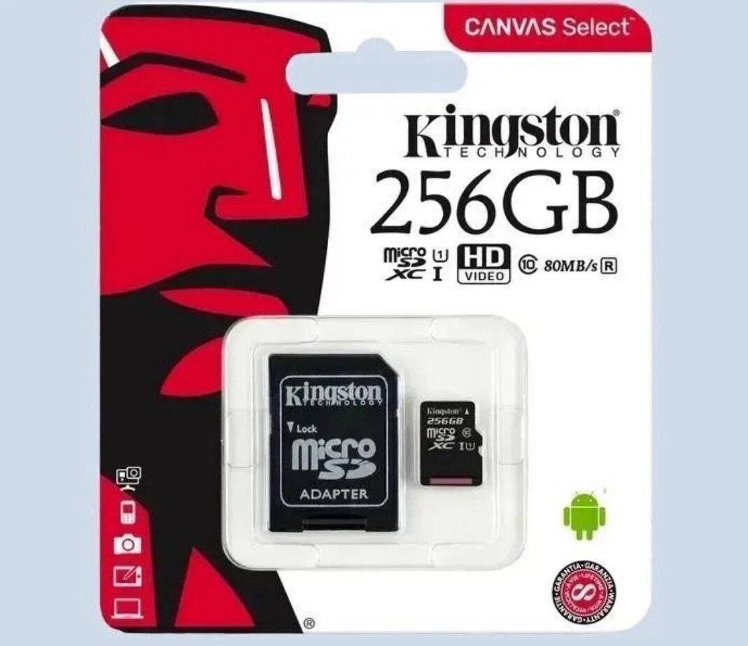 Купить Карта памяти Kingston microSDHC 256 ГБ Class 4, R 4 МБ/с, адаптер на SD