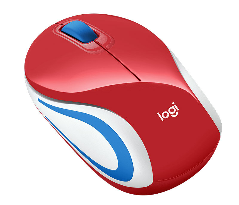 Мышь Logitech Mini M187, оптическая, беспроводная, USB, красный и белый [910-002732]