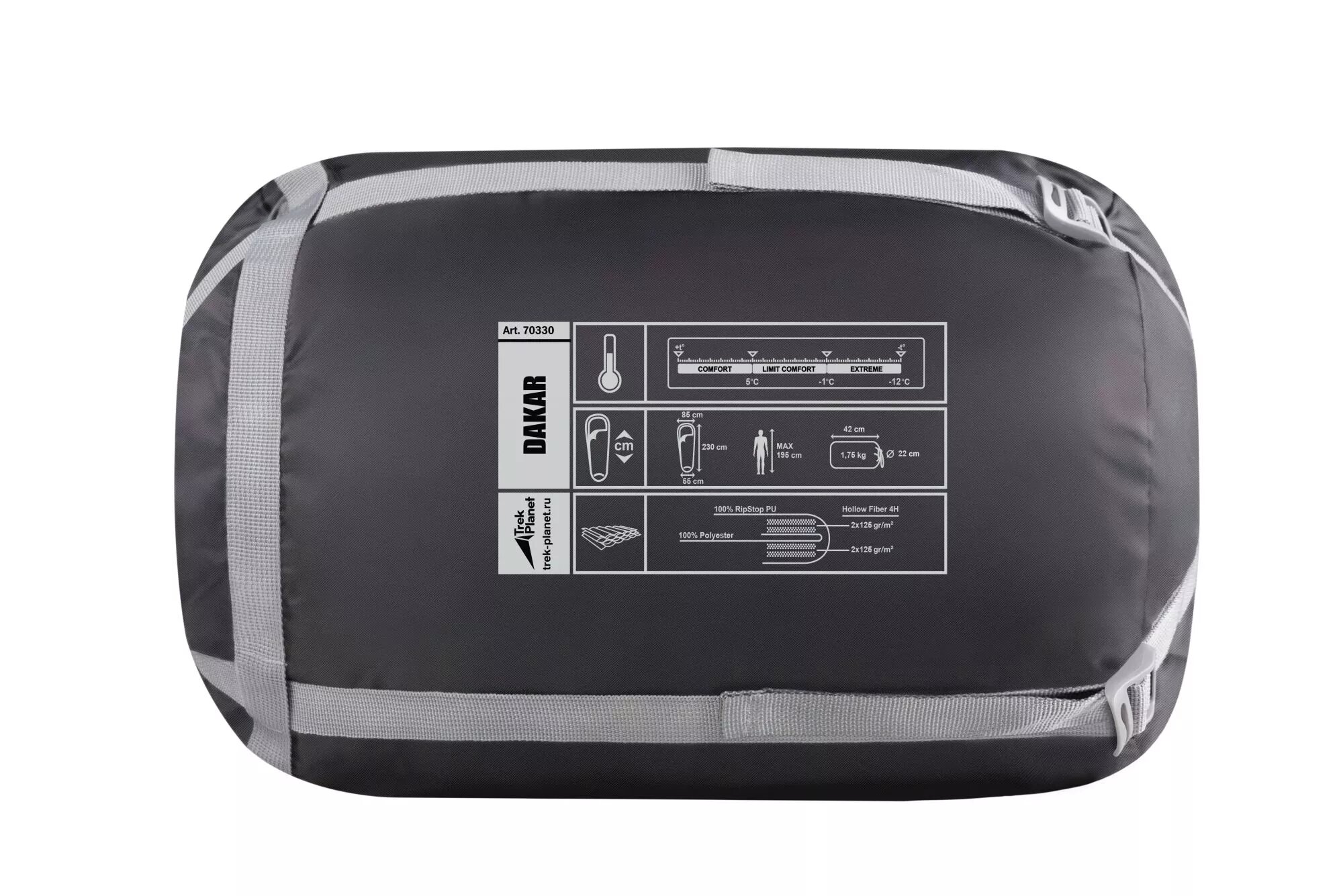Спальный мешок TREK PLANET Redmoon, трехсезонный, правая молния, цвет: серый