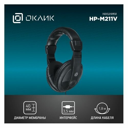 Наушники Oklick HP-M211V, 3.5 мм, мониторные, черный [hp-m211vb]