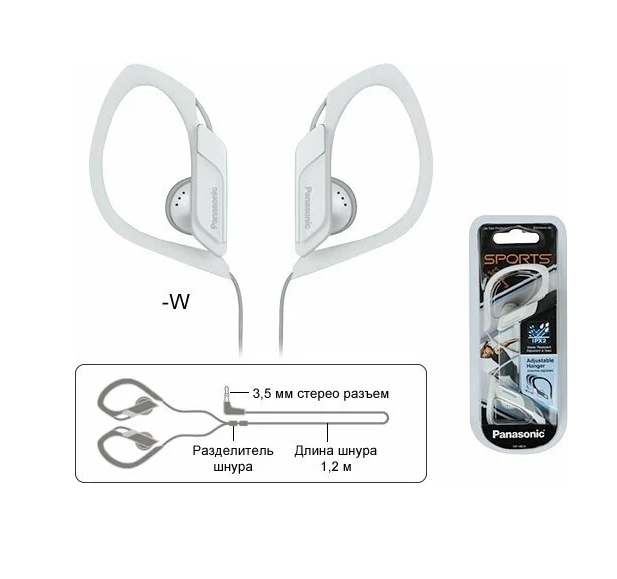 Наушники вкладыши Panasonic RP-HS34E-W Sports, регулируемое крепление за ухом, водонепроницаемые, белые