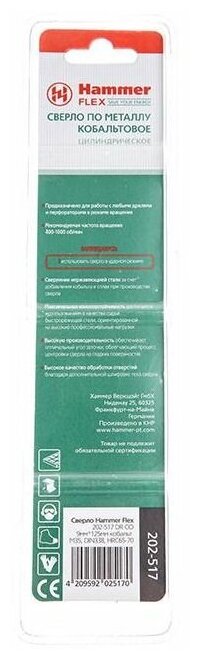 Сверло по металлу 9,0 мм х 125 мм, HSS, CO, Hammer Flex 202-517, 59151 интересное:
