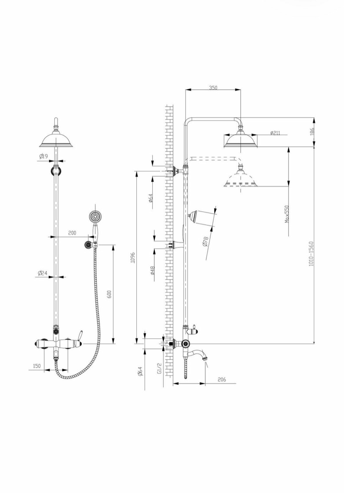 | Дополнительная информация | покрытие розовое золото; высота стойки для душа: 1746 мм; диаметр душевой лейки: 78 мм; диаметр верхнего душа: 211 мм |