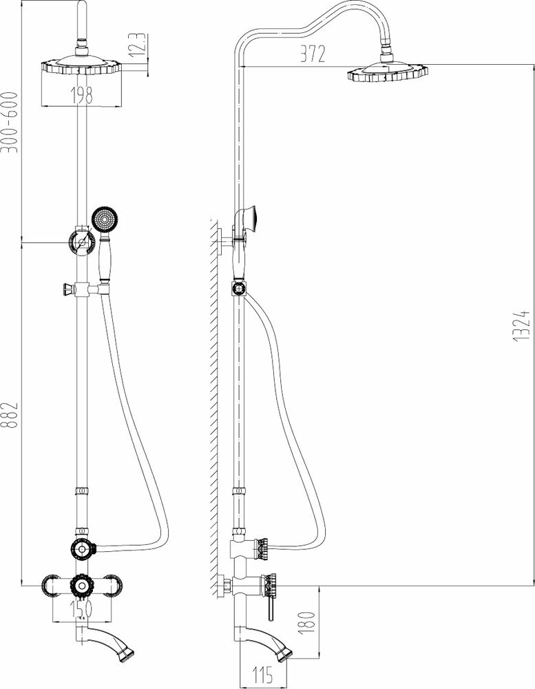 Душевая система LEMARK Jasmine (LM6662B) с изливом для ванны, бронза