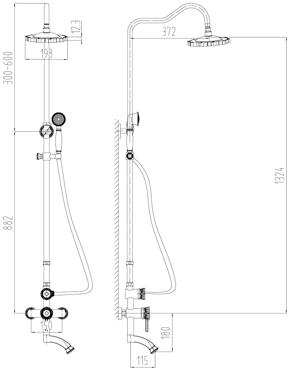 | Дополнительная информация | покрытие черная бронза; высота стойки для душа: 1482 мм; диаметр душевой лейки: 78 мм; диаметр верхнего душа: 191 мм |