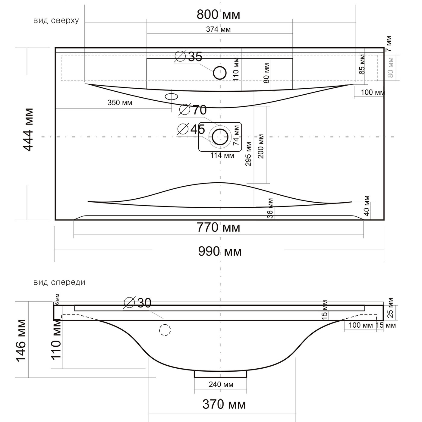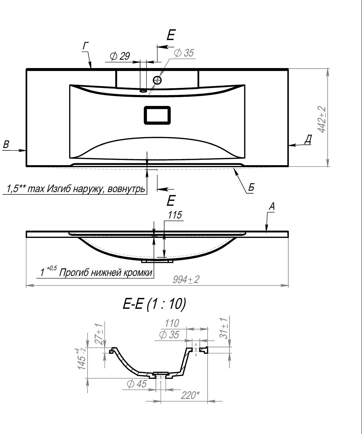 | Отверстие под перелив | есть |