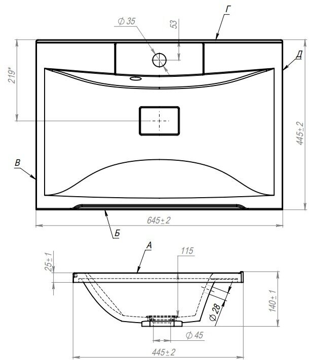 | Отверстие под перелив | есть |