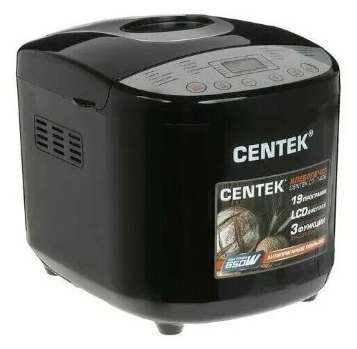 Хлебопечка Centek CT-1406 Black <900г> 650Вт, 19 программ (йогурт, джем, кекс), LCD, отсрочка