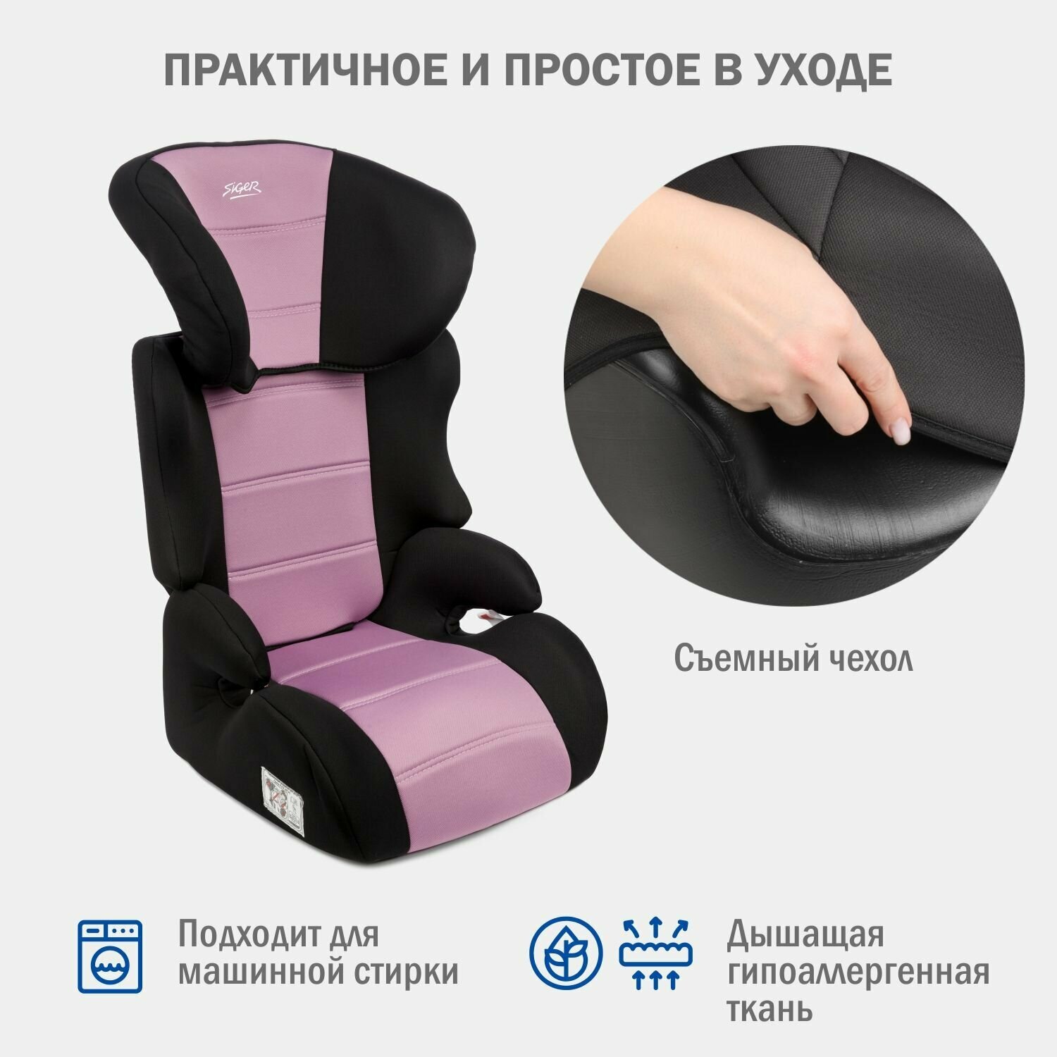 Автокресло SIGER Смарт фиолетовый (3-12 лет 15-36 кг группа 2/3)