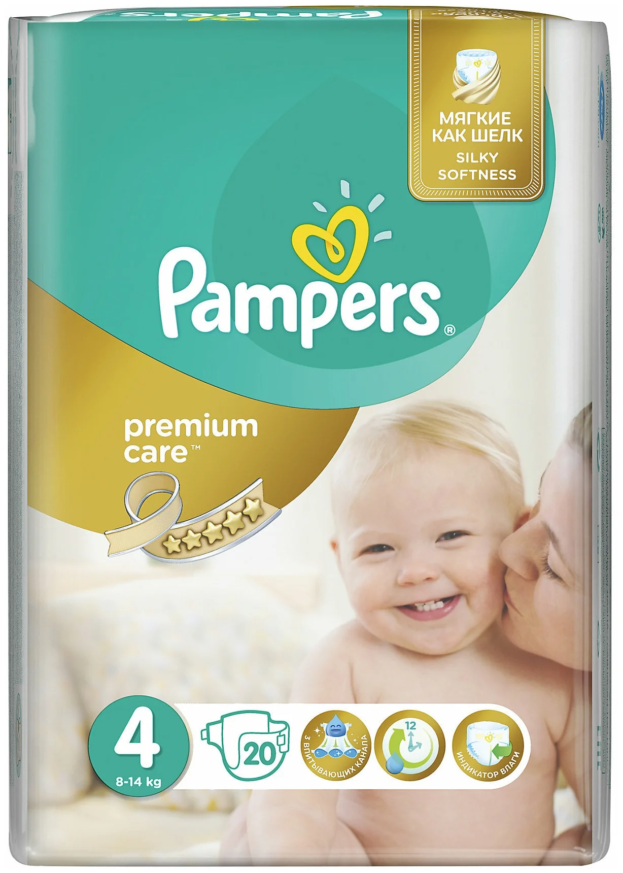 Pampers Подгузники Pampers Premium Care 8-14 кг, 4 размер, 20 шт интересное: