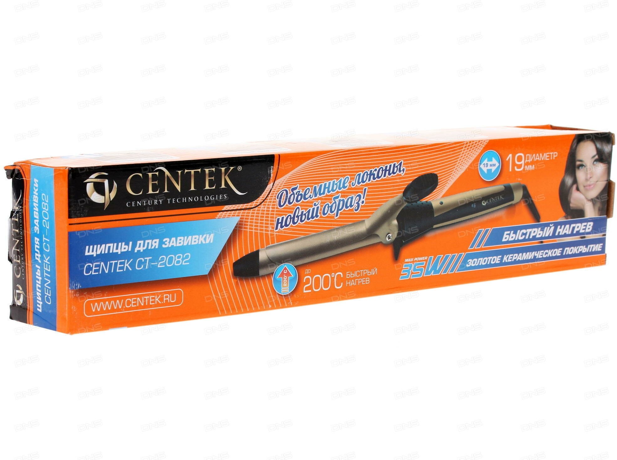 Щипцы Centek CT-2082, 35Вт, 19мм диаметр, керам покрытие, LED, золотистые