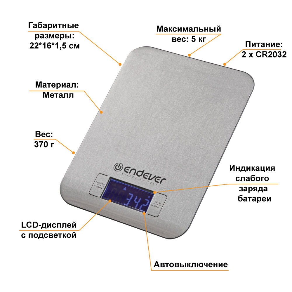 Весы кухонные Endever Skyline KS-525, стальной (80019)