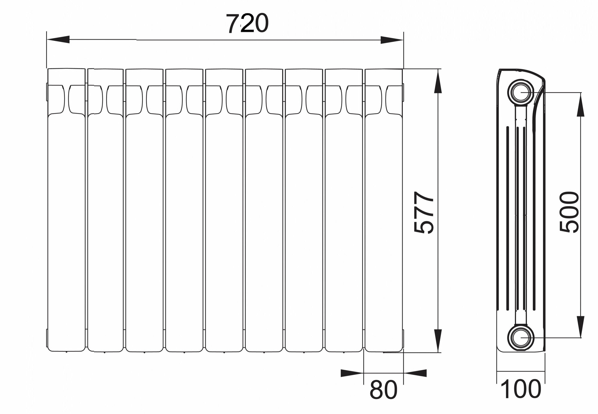 Радиатор секционный Rifar Monolit Ventil 500, кол-во секций: 9, 17.64 м2, 1764 Вт, 720 мм., подключение нижнее (справа)