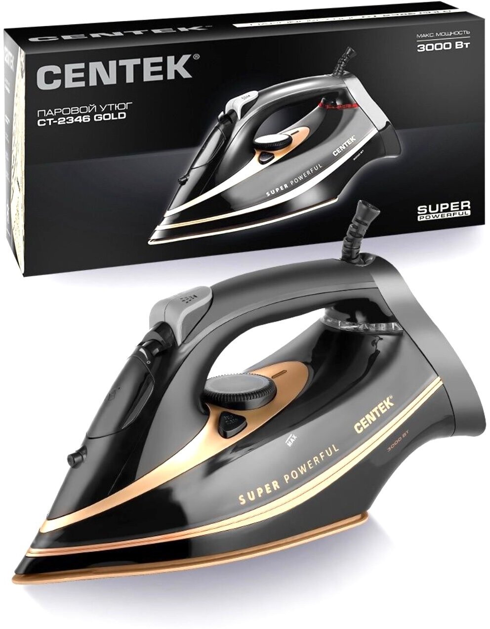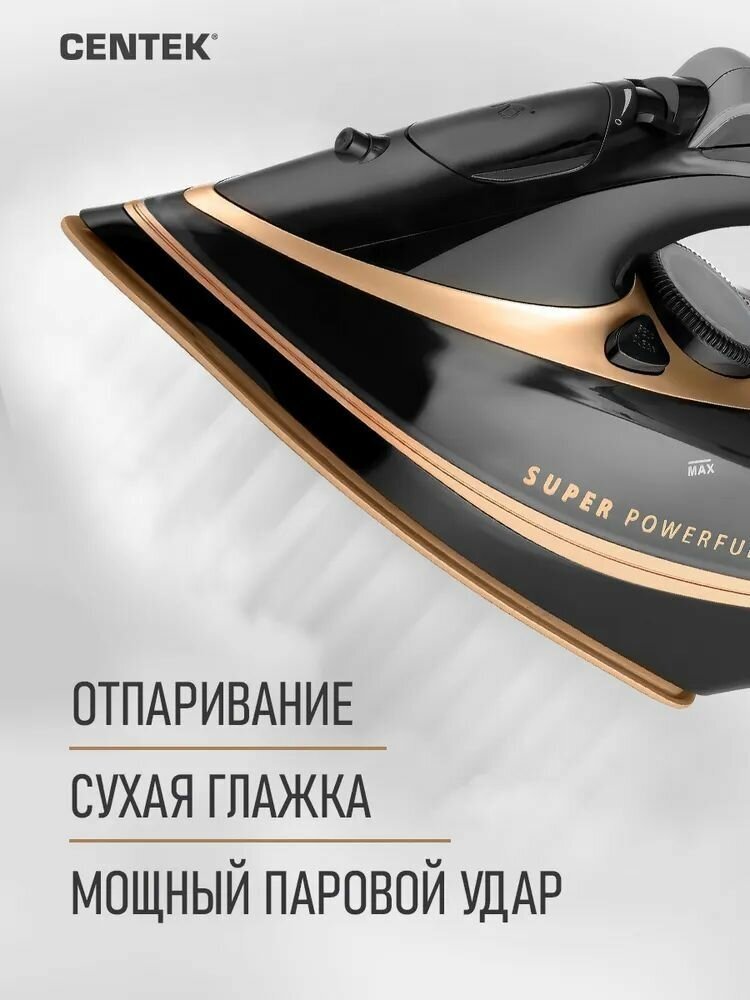 Утюг Centek CT-2346 GOLD>3000Вт, мощный паровой удар, керамическая подошва, самоочистка, 380мл