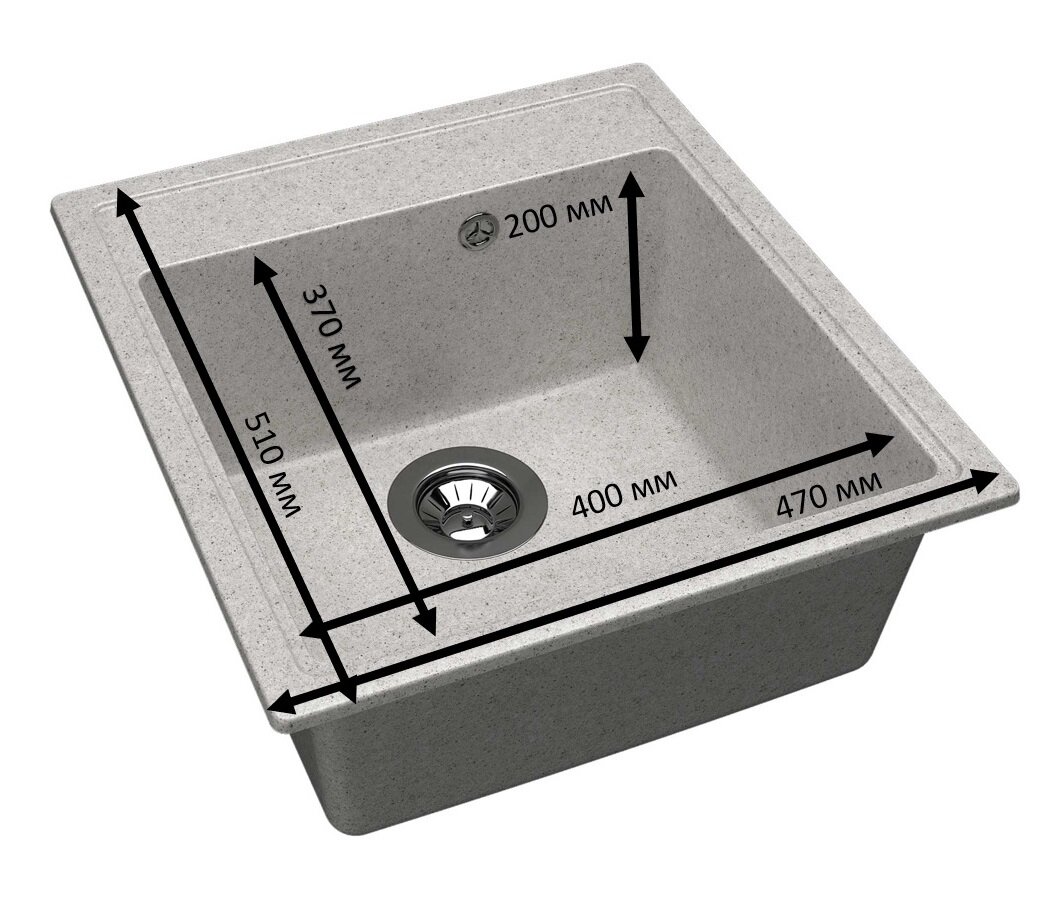 Мойка для кухни врезная каменная Dr. Gans НИКА-470, цвет латте, квадратная, 470х510х217 мм