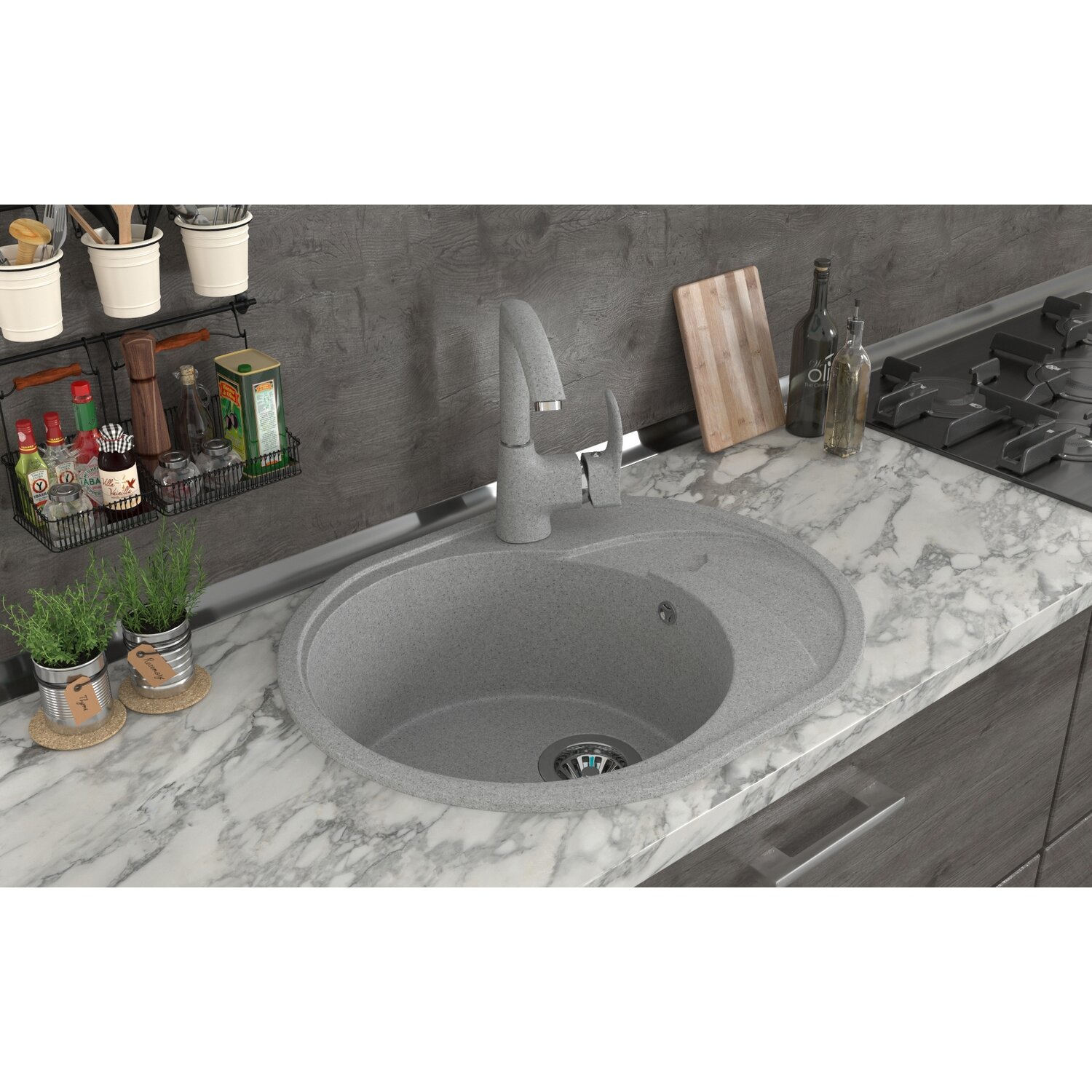 Мойка для кухни из искусственного мрамора, круглая, с сифоном, MIXLINE ML-GM 12, антрацит