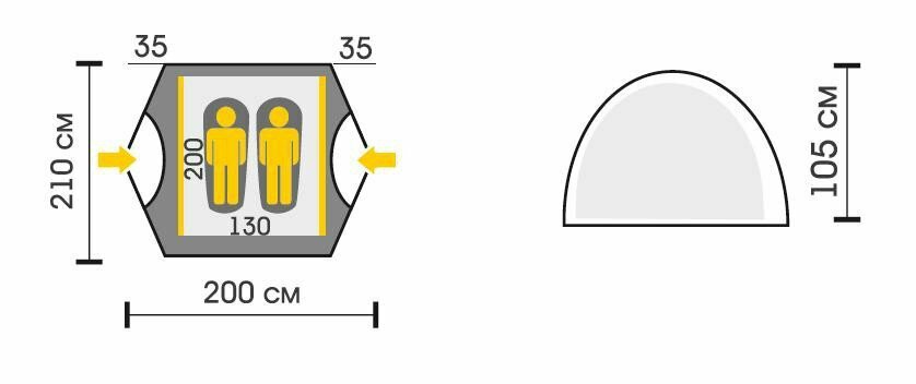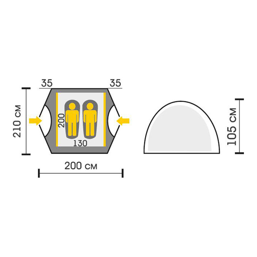 | Плюсы: | Легко ставить и разбирать, хороший вес. Очень понравились входы, их два, отлично сделана и плотная часть, и дубляж сеткой. Плюс вентиляционное окно. По высоте - внутри удобно! И думаю, что при необходимости 3 человека валетом тоже влезут. ) для начинающего туриста в самый раз. |