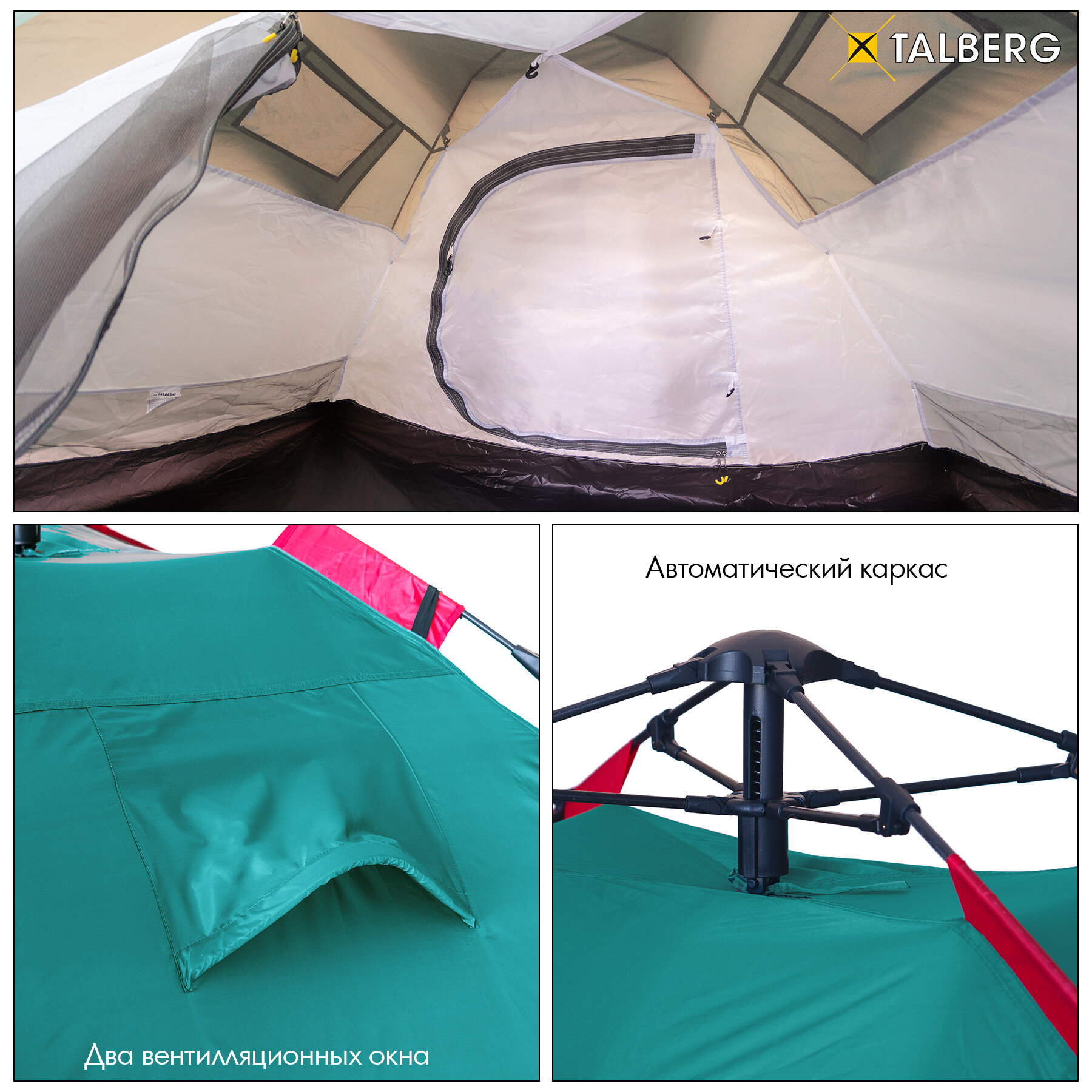 Палатка туристическая треккинговая полуавтомат Talberg GAZA 2, цвет: зелёный