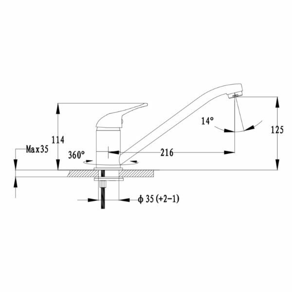 | Длина излива | 216 мм |