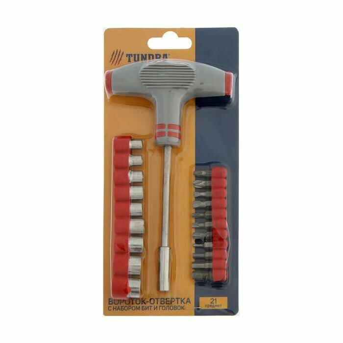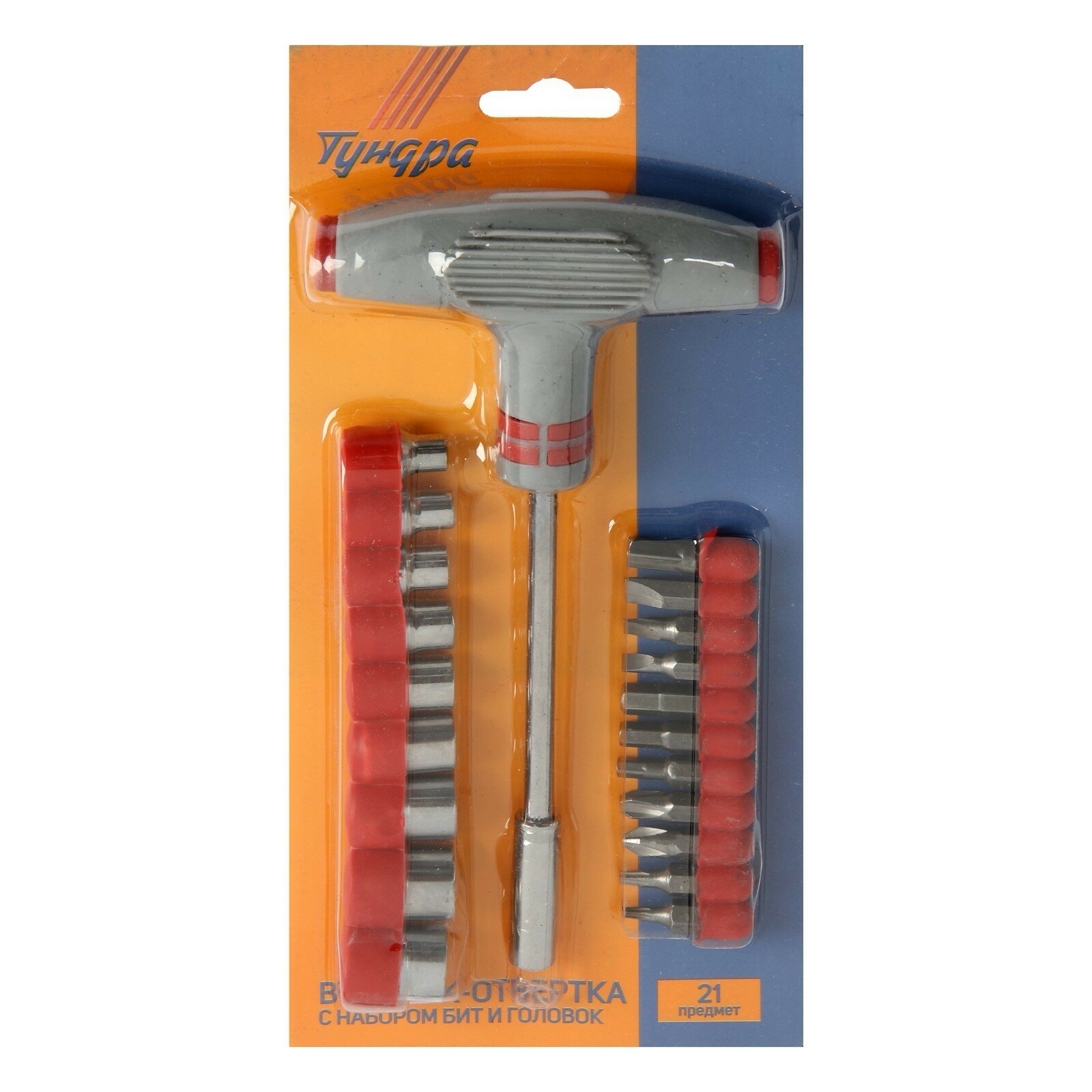 Купить Тундра Отвертка с набором бит и головок тундра, Т-образный профилированный держатель, 21 предмет