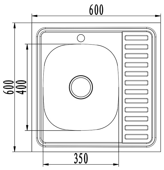 Накладная кухонная мойка Mixline из нержавеющей стали квадратная 60х60 см выпуск 3 1/2 глубина 16 см крыло правое