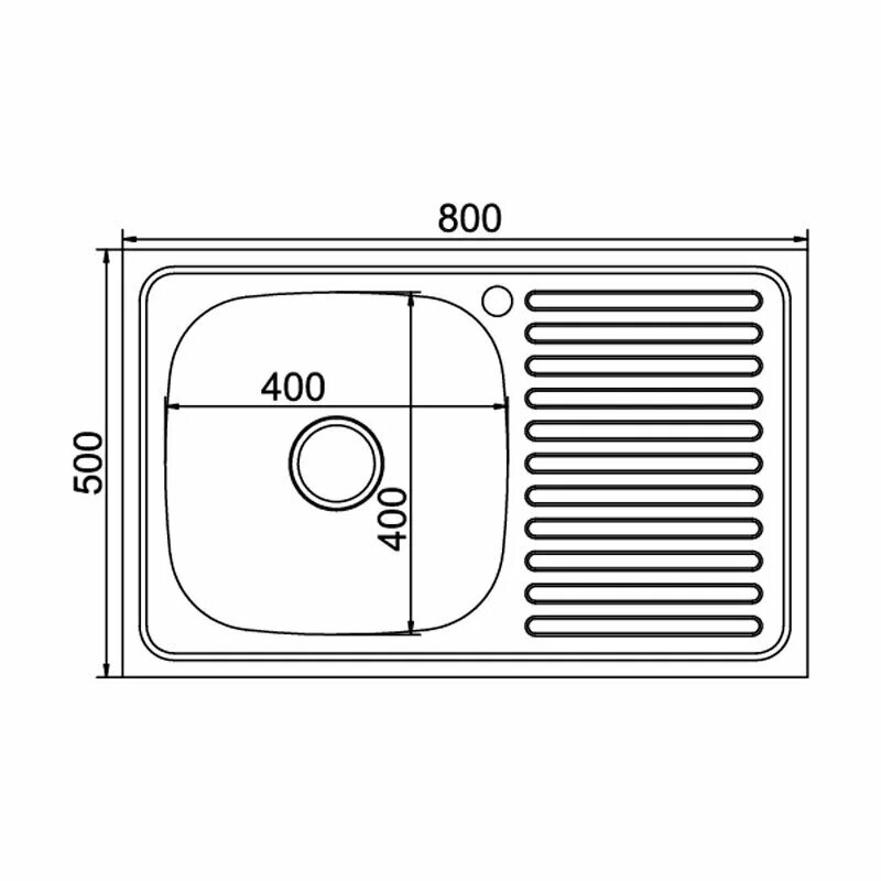 Накладная кухонная мойка Mixline из нержавеющей стали прямоугольная 50х80 см выпуск 3 1/2 глубина 16 см правое крыло