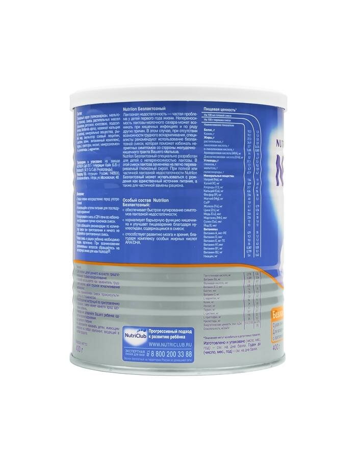 Смесь Nutrilon сухая безлактозная с рождения, 400г