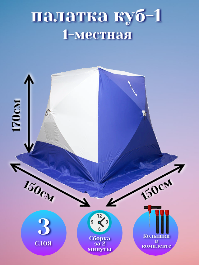 Купить Палатка для зимней рыбалки "Стэк" Куб-1 трехслойная