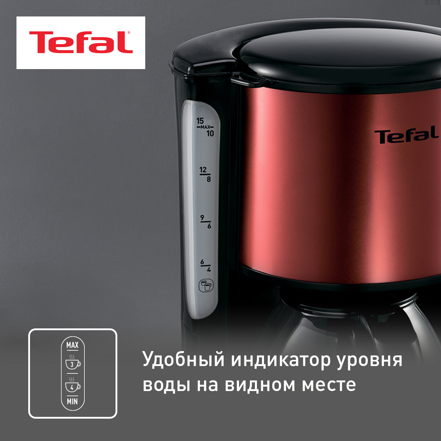 СохранитьКофеварка капельная Tefal CM361E38 красный интересное: