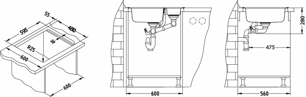 Мойка LINE MAXIM 50 SAT-90 610X500