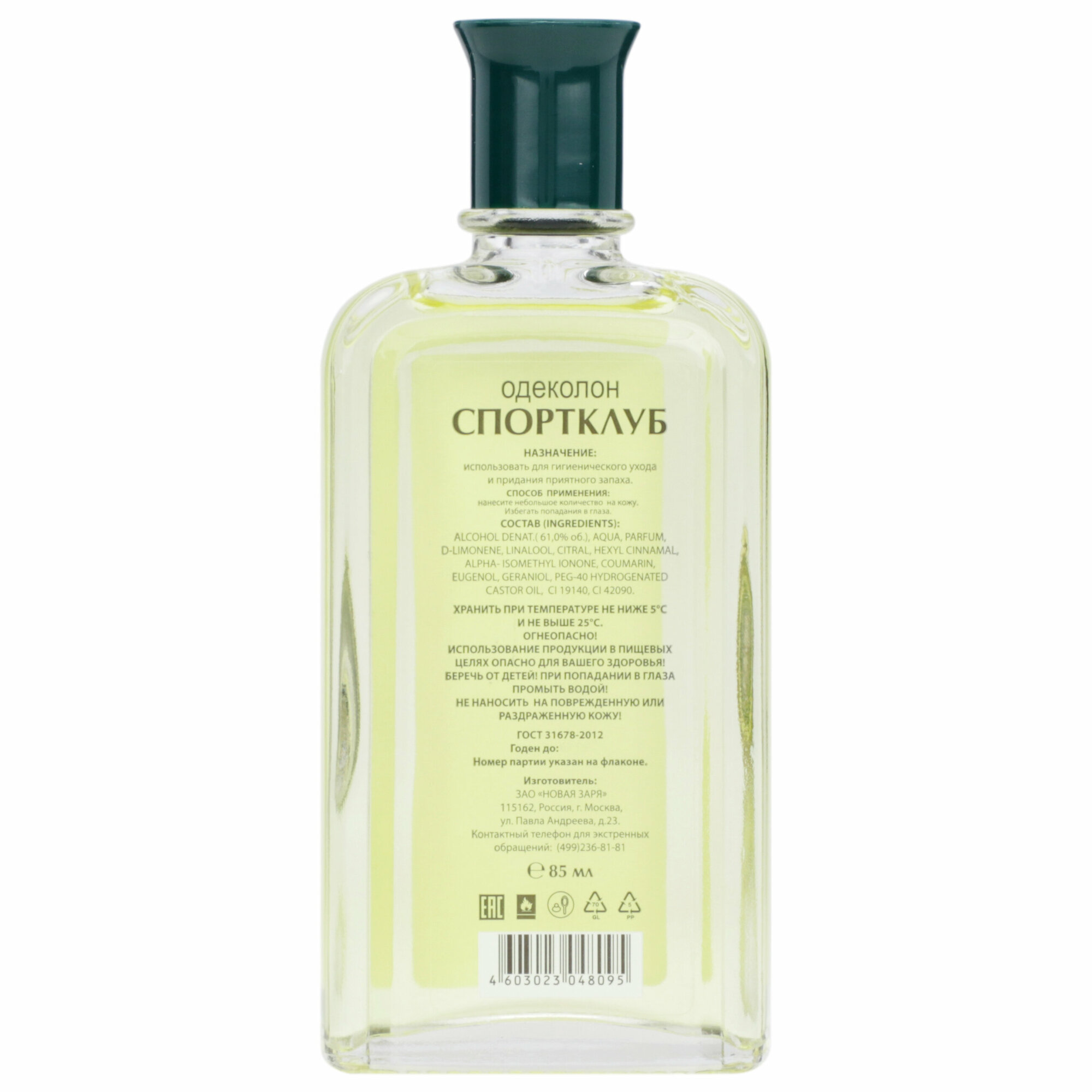 Новая Заря Одеколон для мужчин Sportclub (Спортклуб), 85 мл