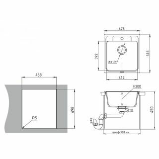 Врезная кухонная мойка 47.8 см, Ewigstein Elegant 50, антрацит