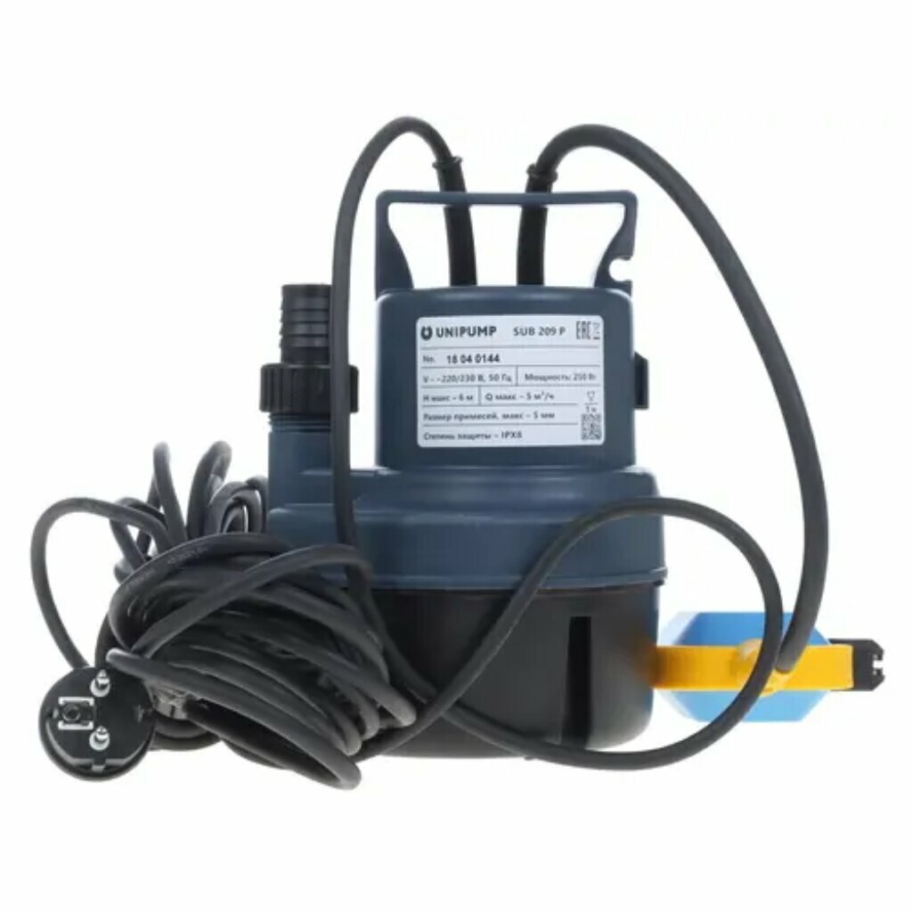 Насос дренажный, Unipump, 250 Вт, глубина погружения 5 м, максимальный напор 6 м, 8 м³/ч, SUB 209 P