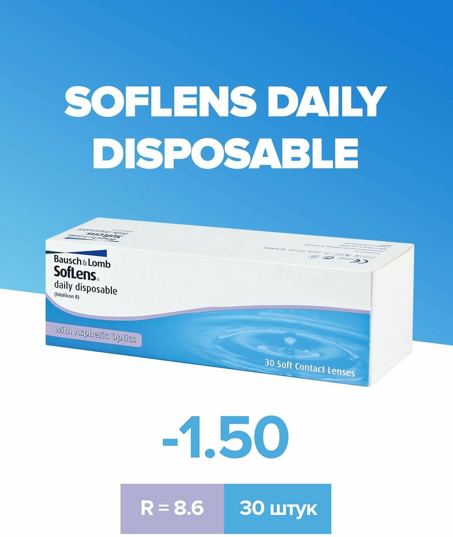 Однодневные контактные линзы Bausch&Lomb SofLens Daily Disposable 30 pk (BC 8.6; D -0.50)