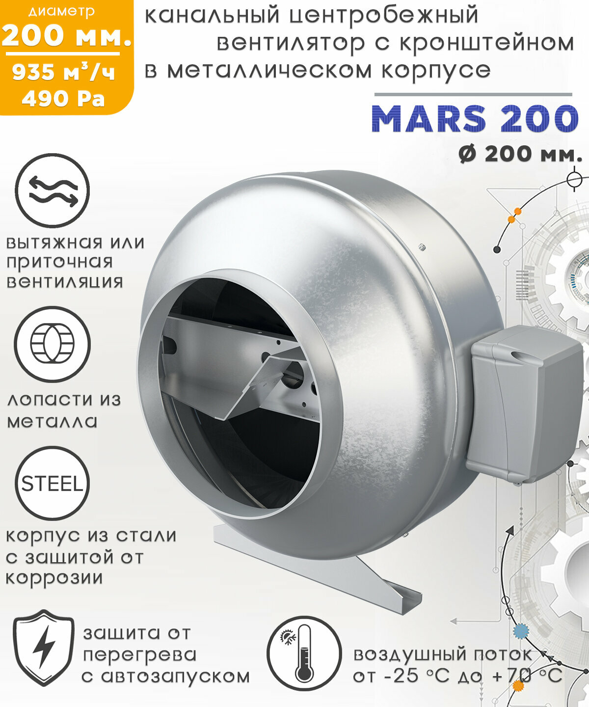 Купить Центробежный канальный вентилятор (сталь) MARS GDF 200 ERA PRO