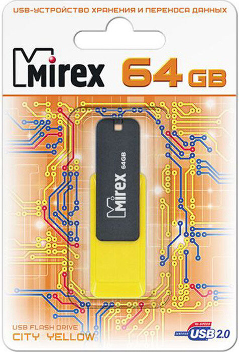 Флешка 64GB Mirex City, USB 2.0, Желтый 13600-FMUCYL64