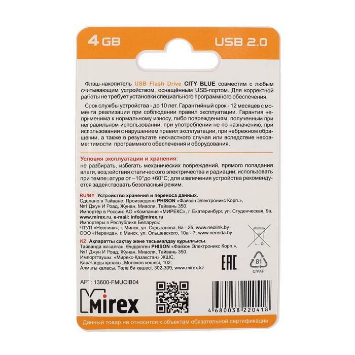 Ниже Вы можете прочитать отзывы на USB Флеш-накопитель MIREX CITY BLUE 4GB, ознакомится с подробными характеристиками, посмотреть интересные обзоры и фотографии на USB Флеш-накопитель MIREX CITY BLUE 4GB.