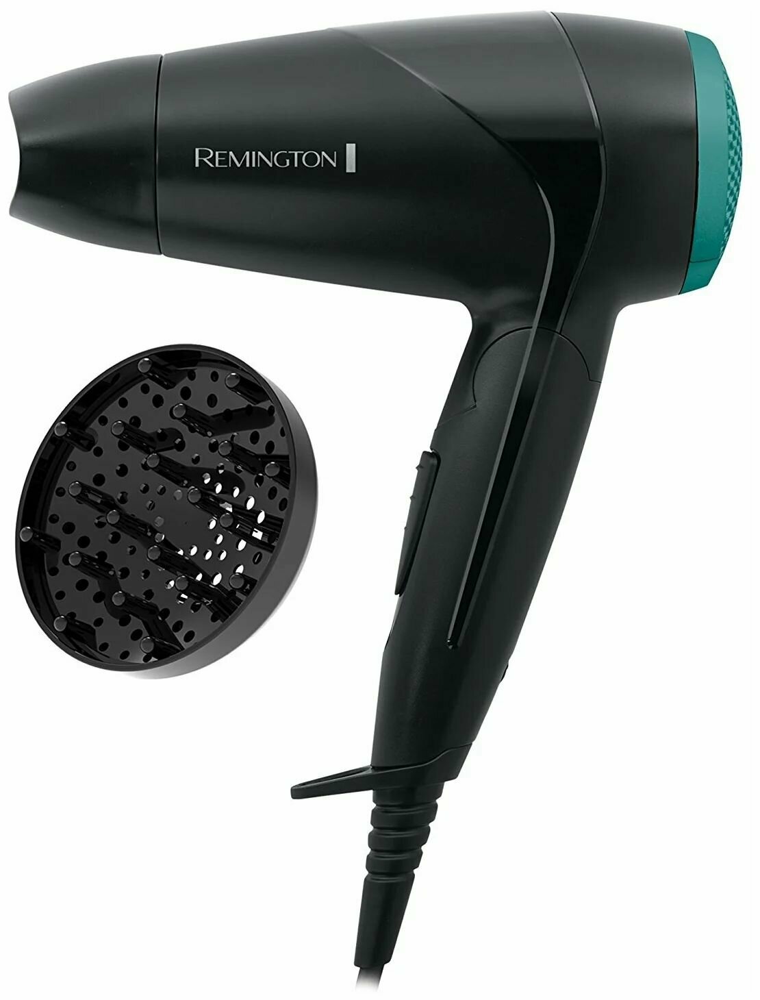 Фен для волос Remington On The Go D1500, дорожный, 2000 Вт, 2 режима скорости/температуры, складная ручка, международное напряжение, черный