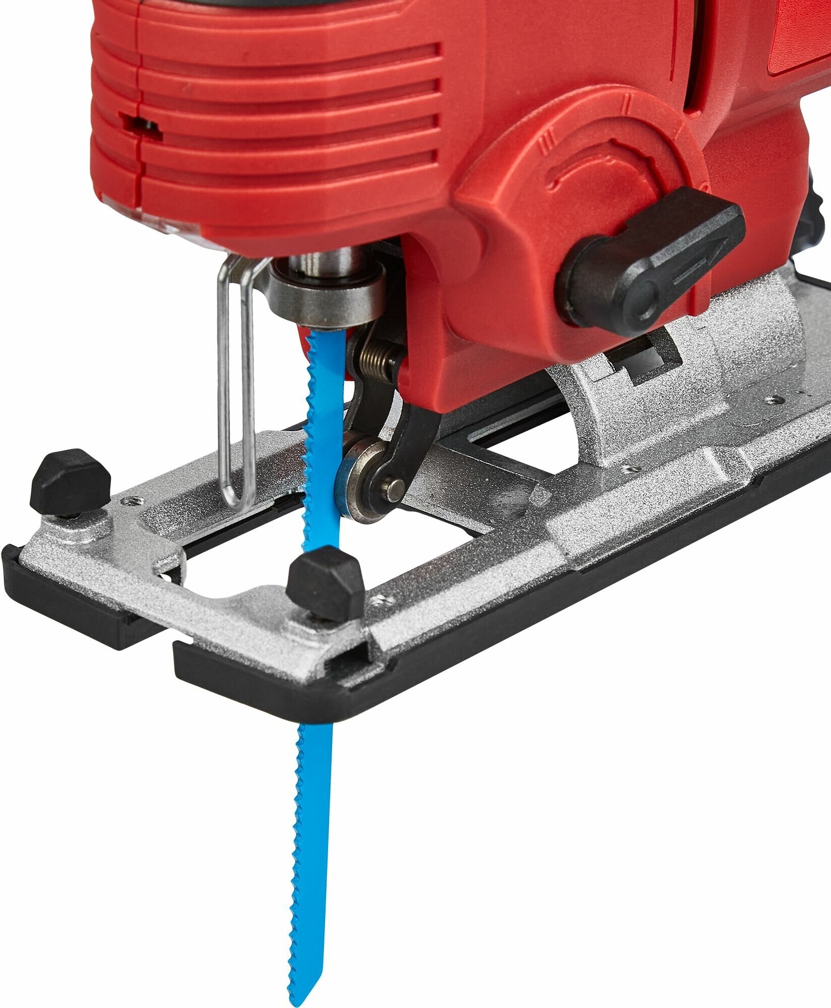Наличие подсветки и лазера Крепеж подошвы на 2 шестигранных болта Быстрая замена пилки. Патрон металлический. Обдув линии пропила. Наличие маятника |
