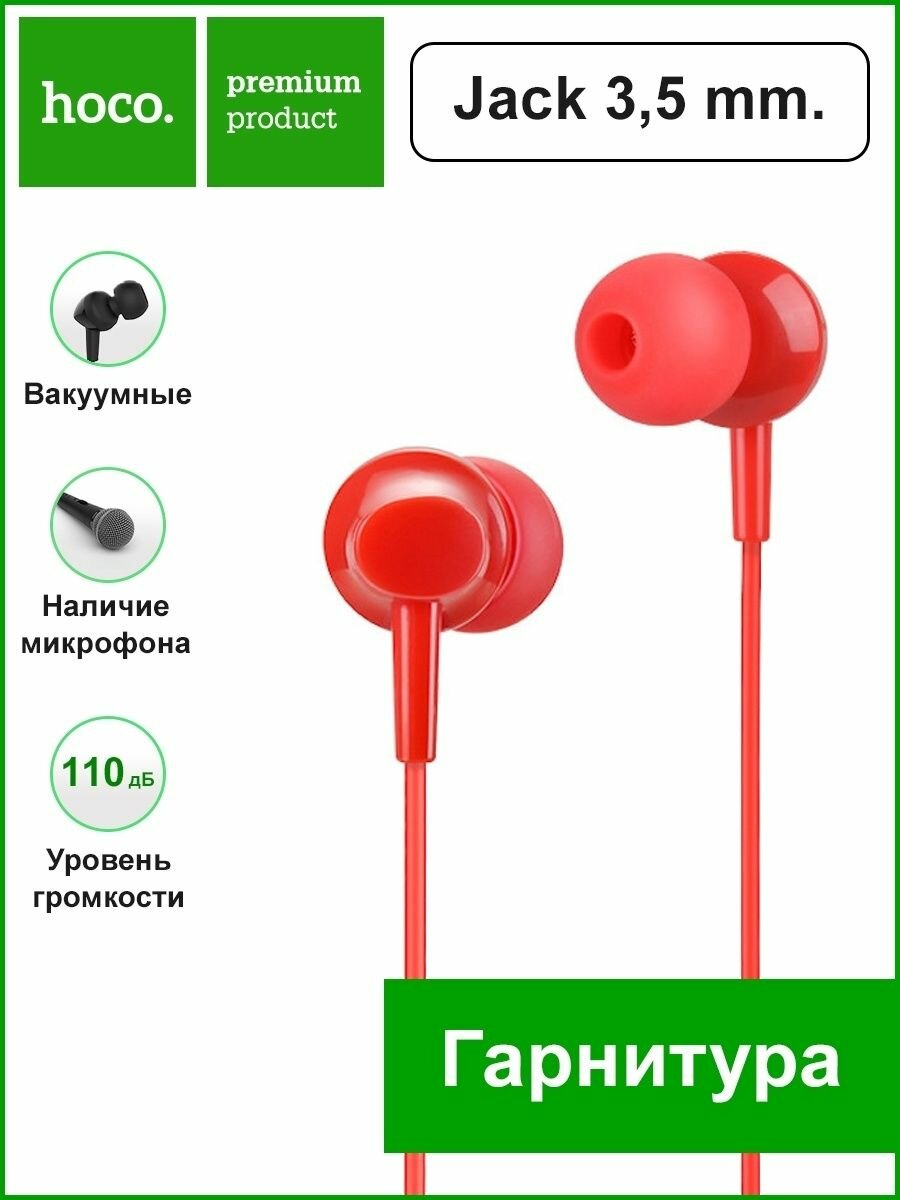 Наушники внутриканальные HOCO M14, Initial Sound, Jack 3.5мм, 1.2 м, цвет: красный