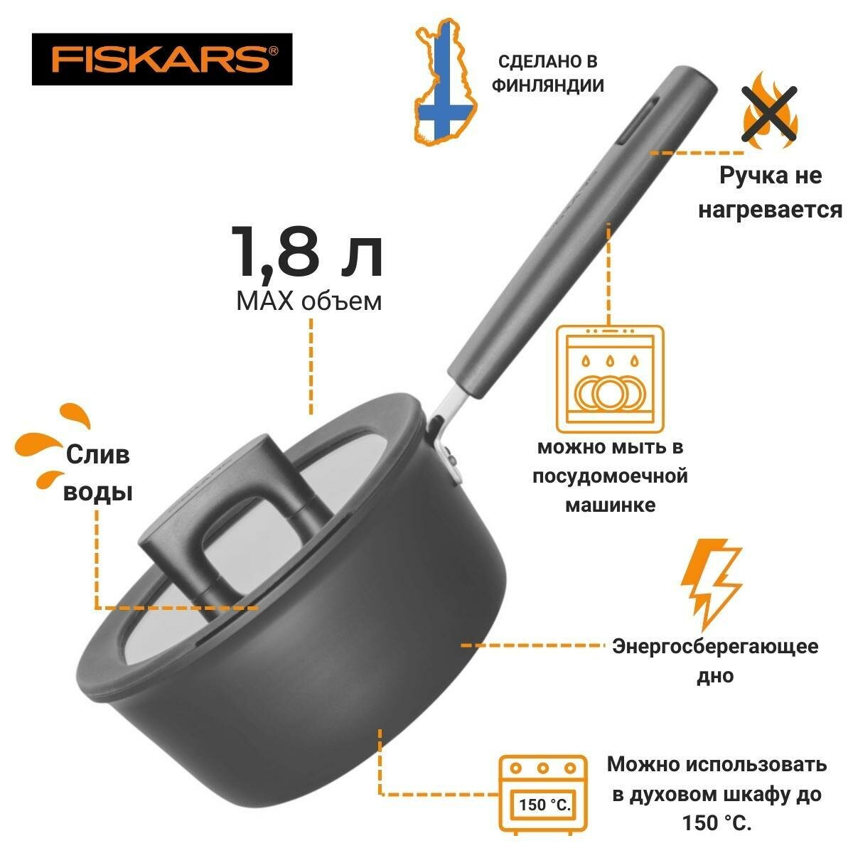 СохранитьКовш Fiskars Hard Face 1,8 л / 18 см с крышкой интересное: