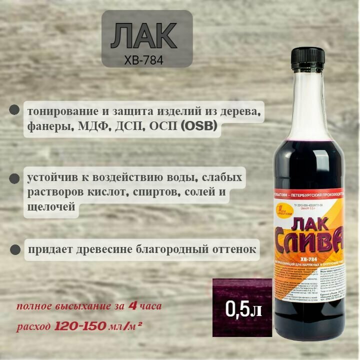 Лак для дерева ХВ-784 Слива 0,5л