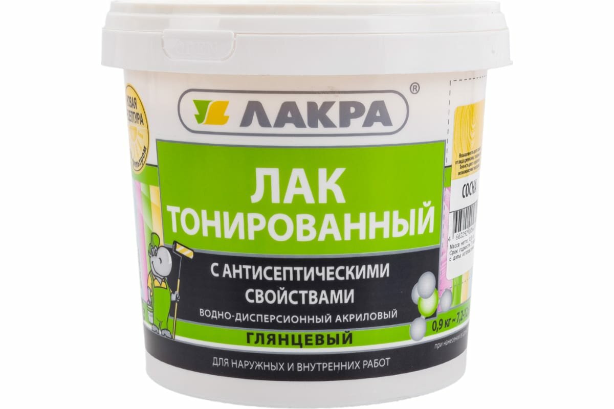 Лак Лакра Тонированный с антисептическими свойствами бесцветный, глянцевая, 0.9 кг, 0.9 л